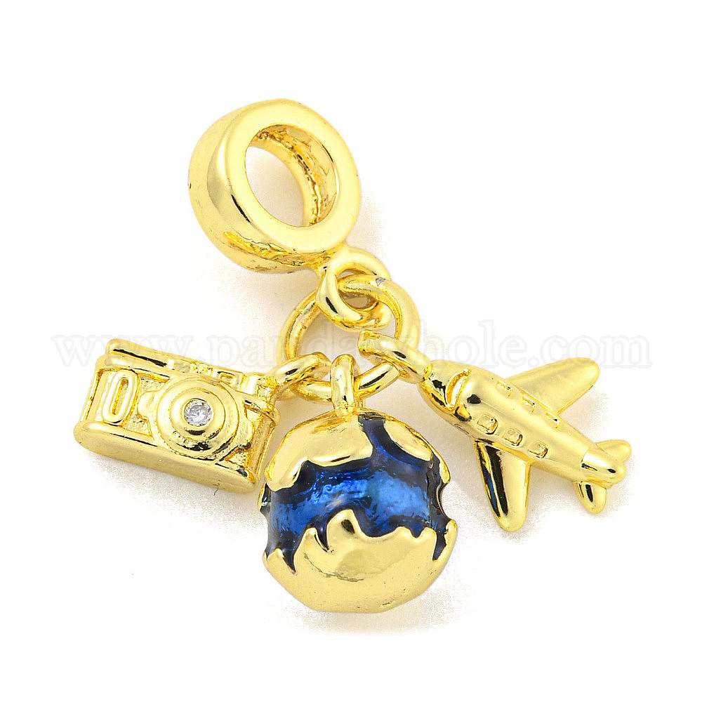 Стеллажное покрытие латунь проложить прозрачный кубический цирконий европейские подвески с подвесками, Подвески с большими отверстиями в виде самолета, камеры и земли, с эмалью, без кадмия и без свинца, долговечный