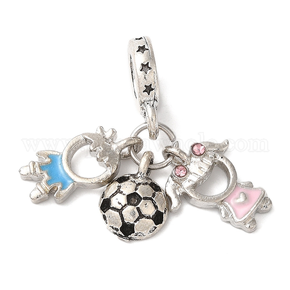 Покрытие стойки, сплав, светло-розовый горный хрусталь, европейские подвески с подвесками, Подвески в виде футбола, мальчиков и девочек с большими отверстиями и эмалью, без кадмия, без никеля и без свинца