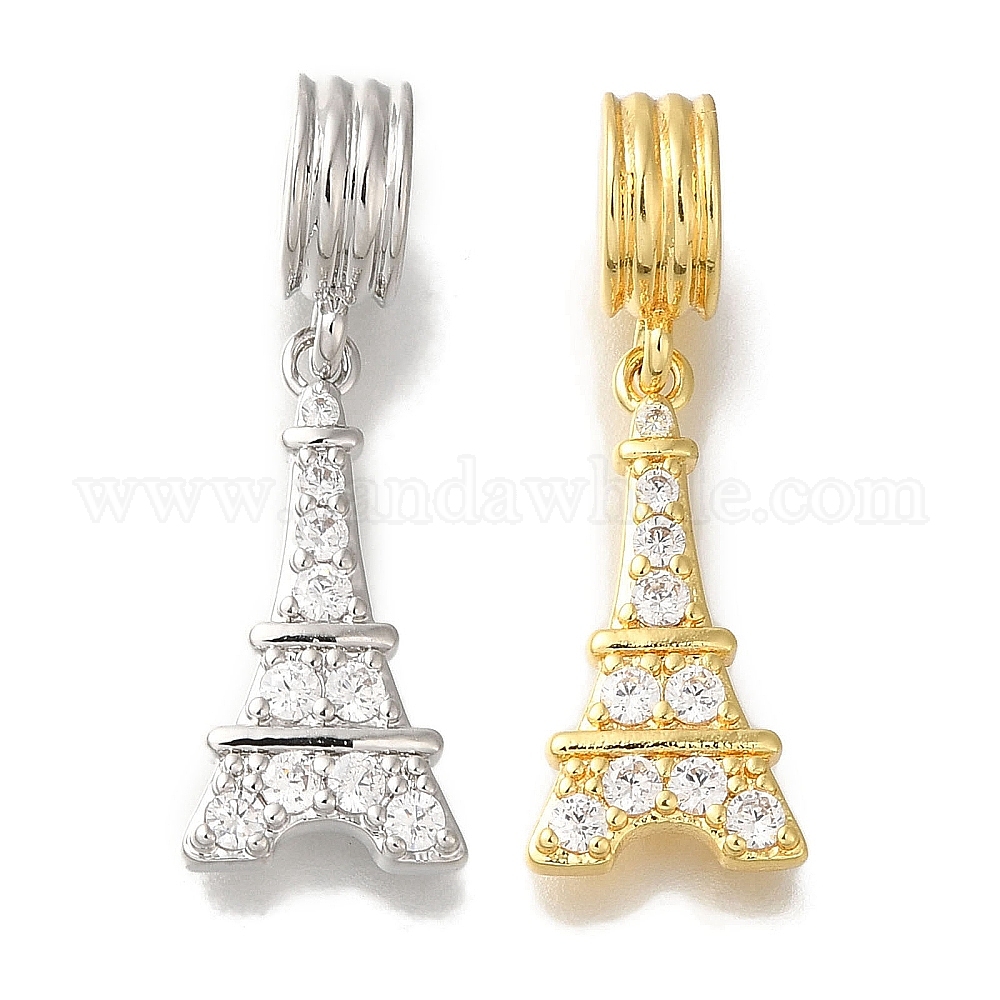 Стеллажное покрытие латунь проложить прозрачный кубический цирконий европейские подвески с подвесками, подвески с большими отверстиями на Эйфелевой башне, без свинца и без кадмия, долговечный (02W4XY)