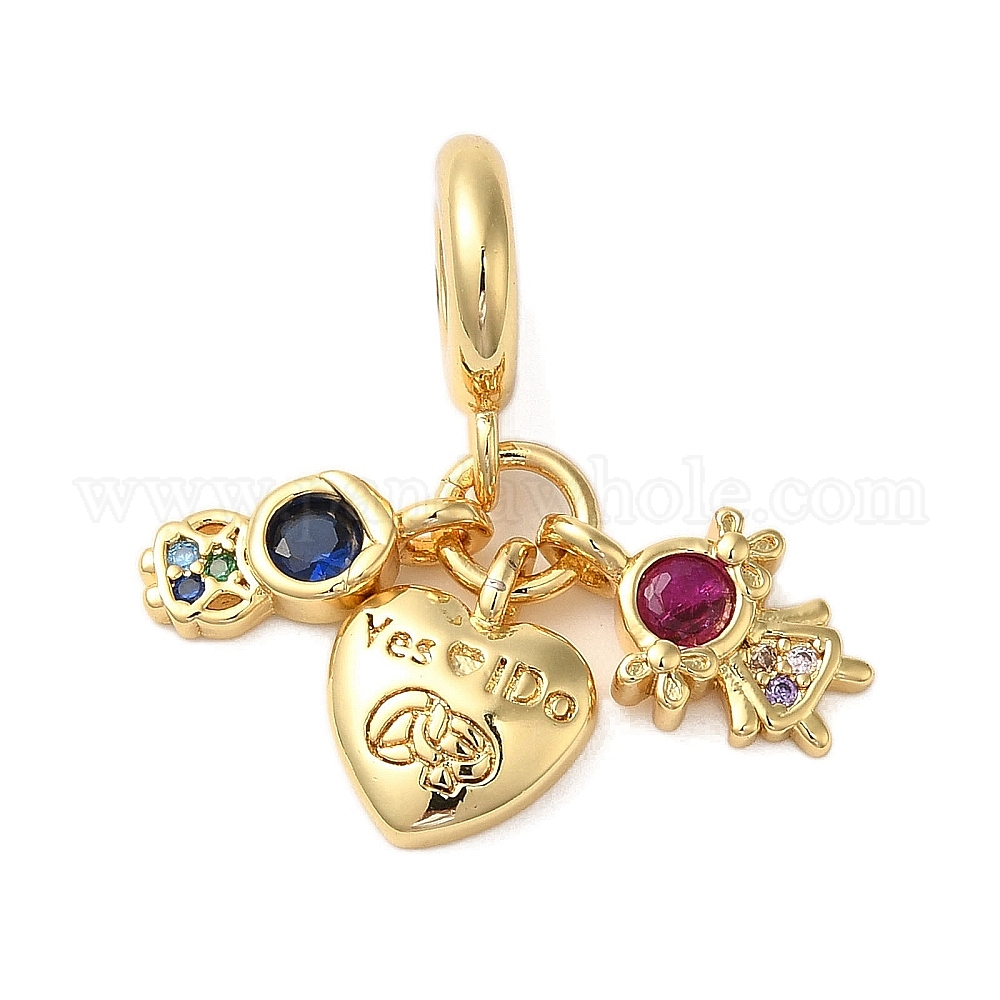 • Настоящее золото 18K Покрытие стойки из латуни, паве, разноцветные европейские подвески с кубическим цирконием, подвески с большими отверстиями в виде девочки, мальчика и сердца, без кадмия и без свинца, долговечный, реальный 18 k позолоченный, 24 мм, отверстие : 5 мм