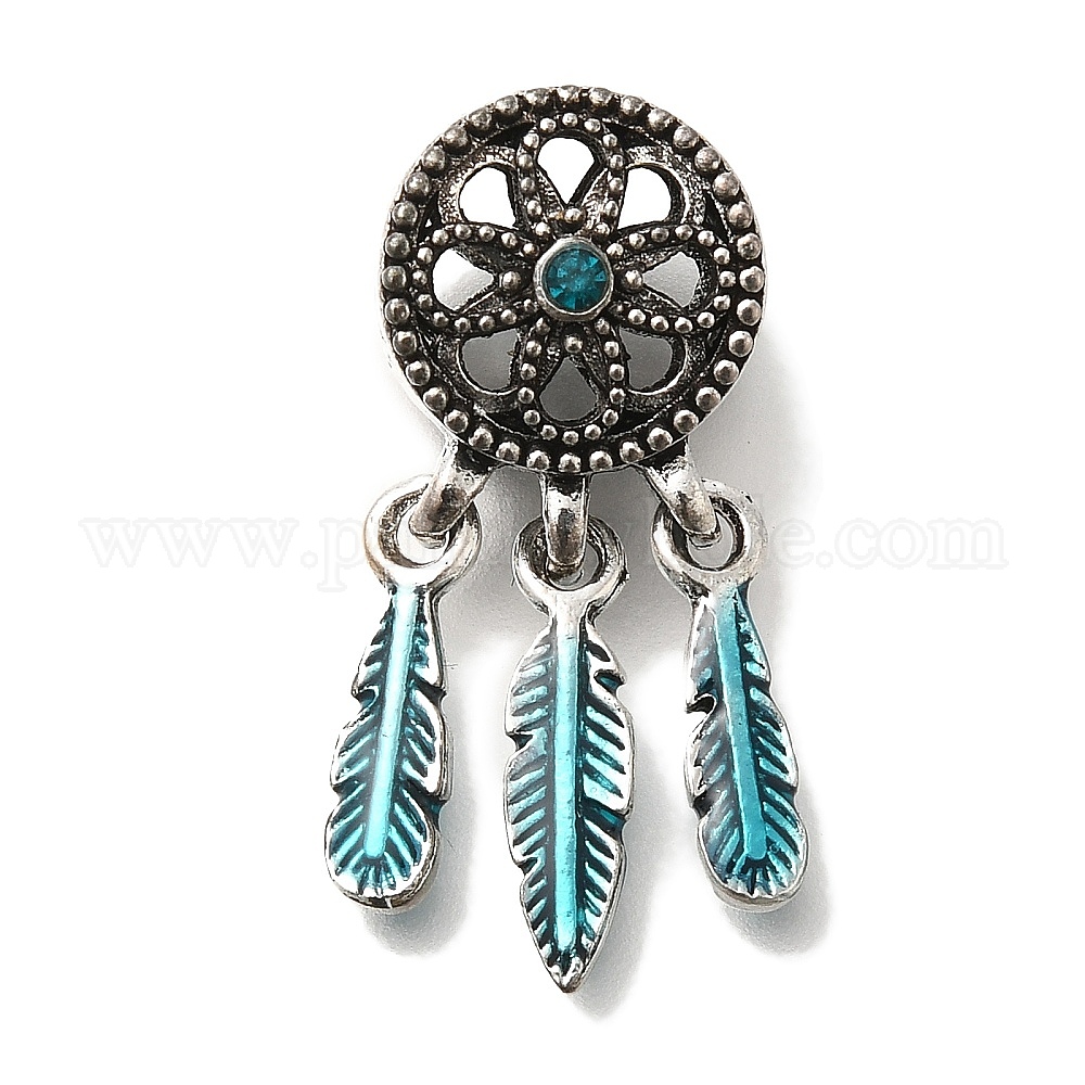 Подвеска из эмалированного сплава с покрытием из сплава в европейском стиле, плетеная сетка/паутина с перьями подвески с большими отверстиями со стразами, без свинца и без кадмия, античное серебро
