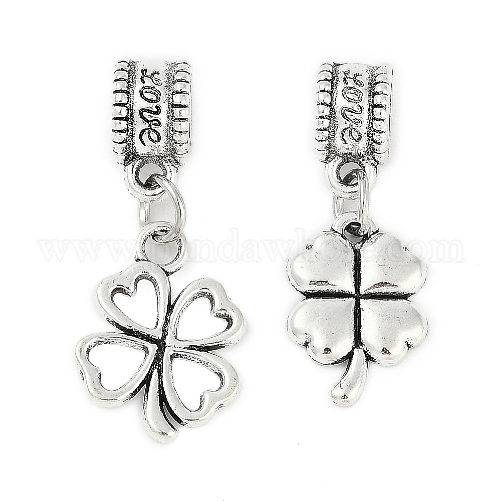Подвеска из латуни с покрытием из латуни в европейском стиле, подвески с большим отверстием в виде клевера, без свинца и без кадмия