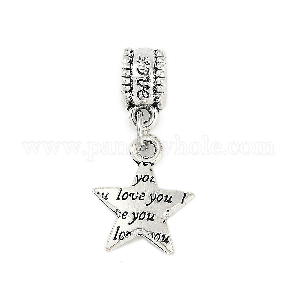 Подвеска из латуни с покрытием из латуни в европейском стиле, звезда со словом подвески с большим отверстием, без свинца и без кадмия