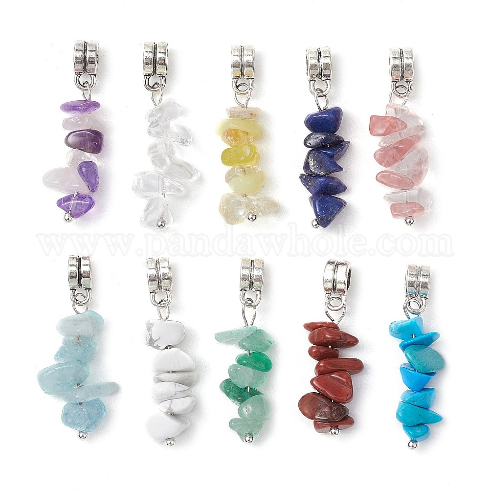 10 шт. 10 стили смешанные драгоценные камни бисерные европейские подвески-шармы, подвески с большими отверстиями и фурнитурой из сплава, античное серебро