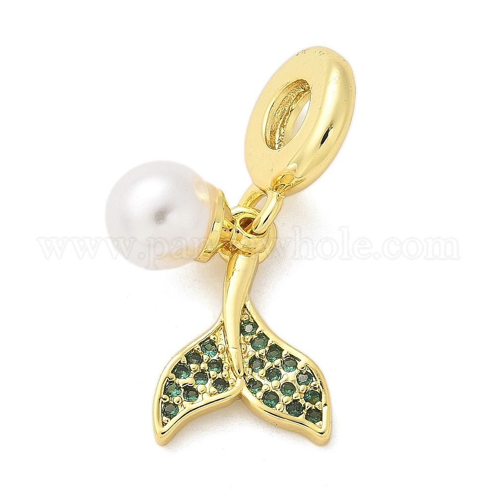 Латунные микро проложить кубического циркония европейская качают шарики, рыбий хвост, с ABS имитации жемчуга, стойки покрытие, долговечный, без свинца и без кадмия