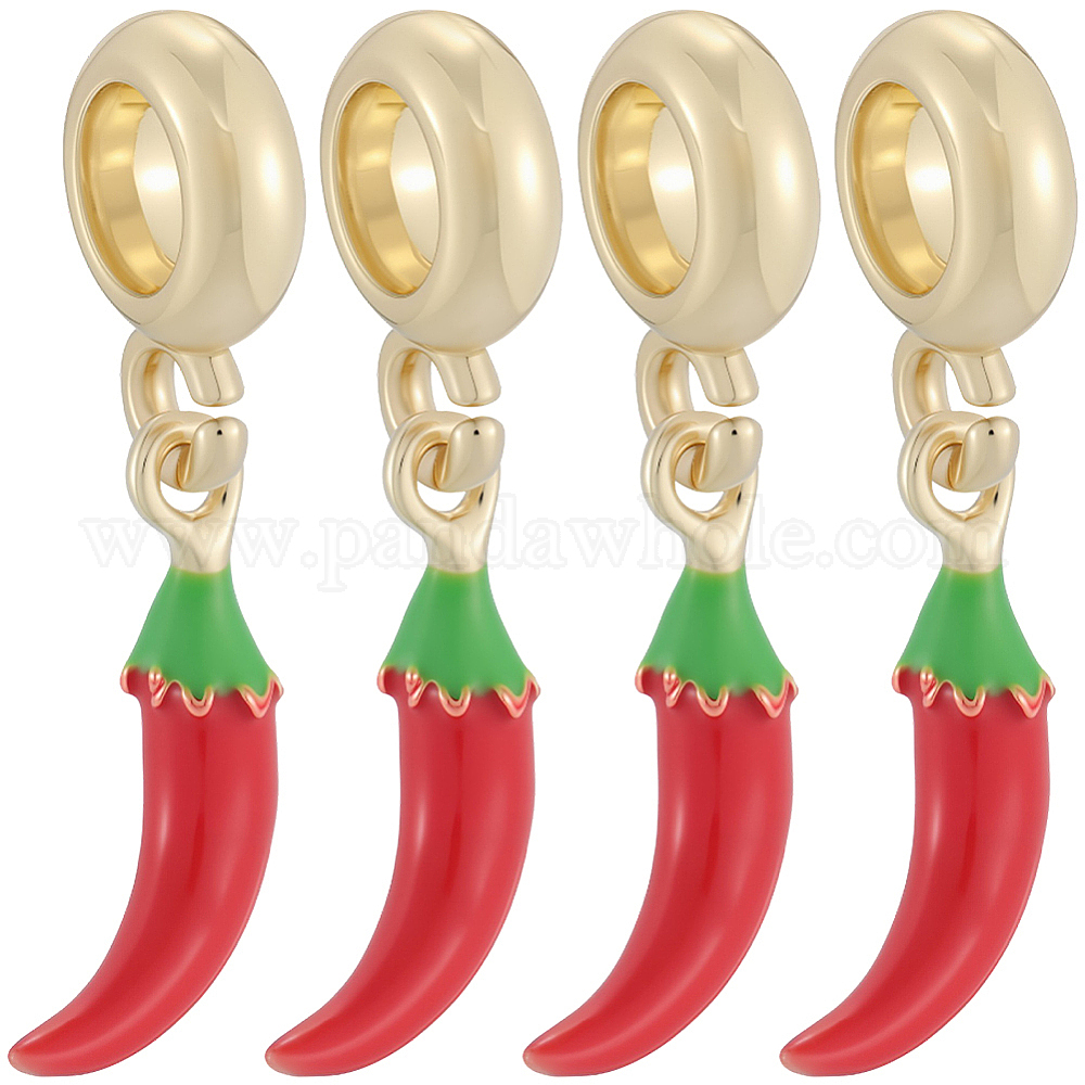 • Hot Pepper 8 шт. латунные подвески-подвески в виде растений из красной эмали в европейском стиле, Подвески с большими отверстиями, реальный 18 k позолоченный, острый перец, 25.5 мм, отверстие : 4.5 мм