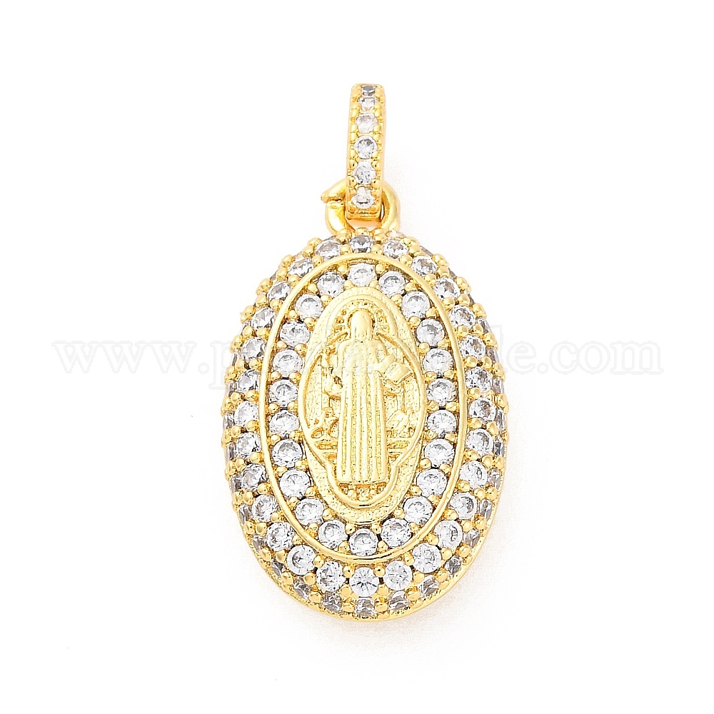 Латунное микропейв с кубическим цирконием европейские подвески с подвесками, эллипс и религия, Святой бенедикт, Подвески с большими отверстиями