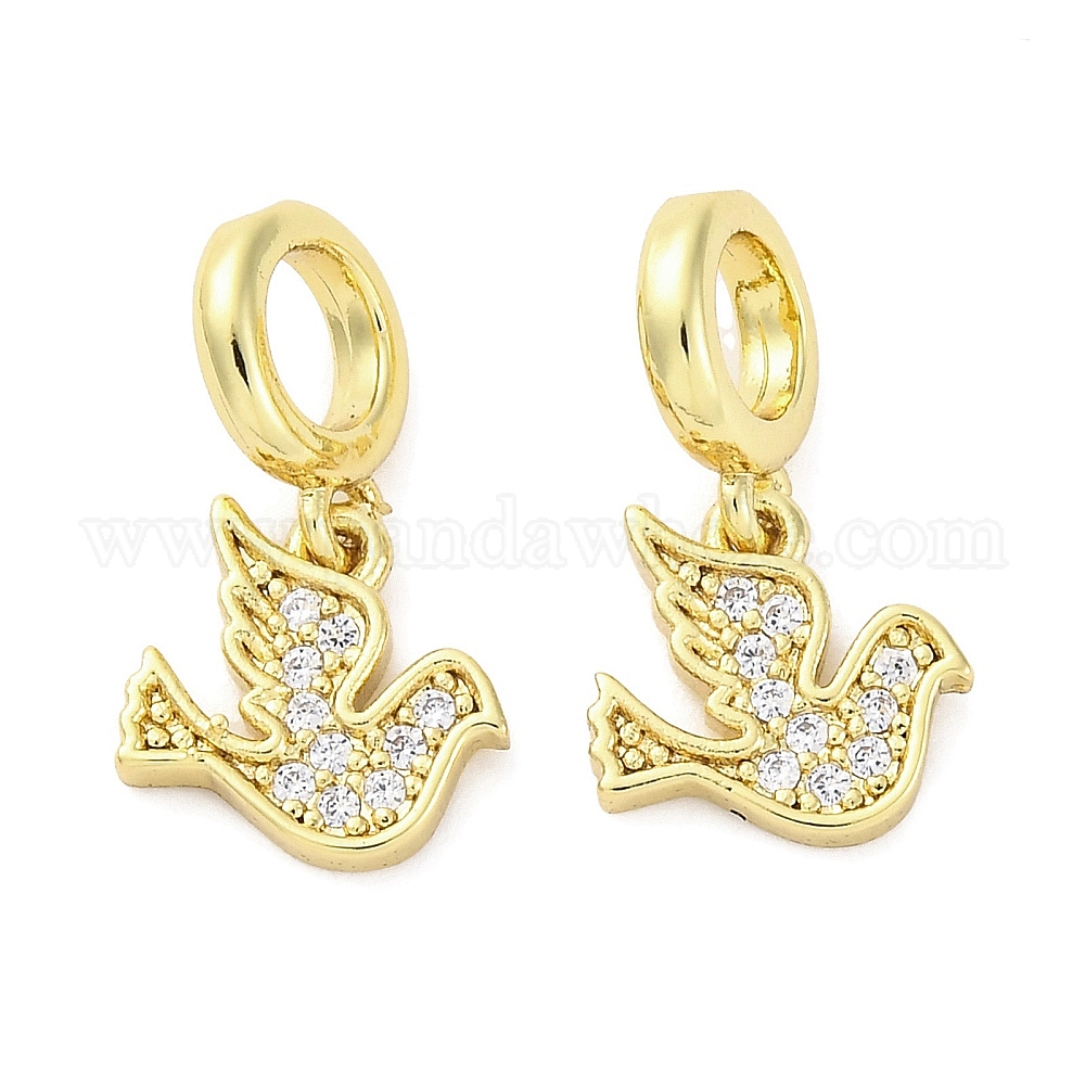 • Настоящее золото 16K Латунное микропейв с кубическим цирконием европейские подвески с подвесками, птица, Подвески с большими отверстиями, без кадмия и без свинца, реальный 16 k позолоченный, 17.5 мм, отверстие : 4.2 мм