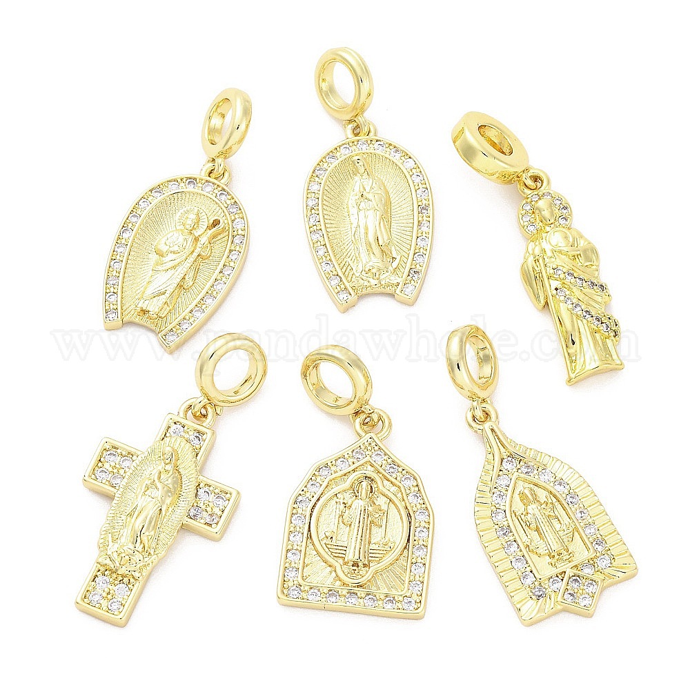 • Настоящее золото 16K Латунные микро-паве кубические цирконии святые европейские подвески-шармы, Подвески с большими отверстиями, без кадмия и без свинца, реальный 16 k позолоченный, 31.5 мм, отверстие : 4.2 мм