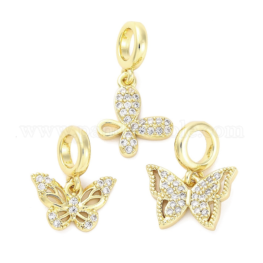 Латунное микропейв с кубическим цирконием европейские подвески с подвесками, бабочка, Подвески с большими отверстиями