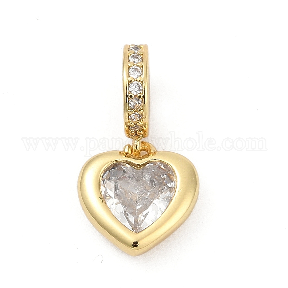 Европейские подвески с подвесками из латуни и кубическим цирконием, Подвески с большими отверстиями, сердце, долговечный, без свинца и без кадмия, стойки покрытие (0328G8)
