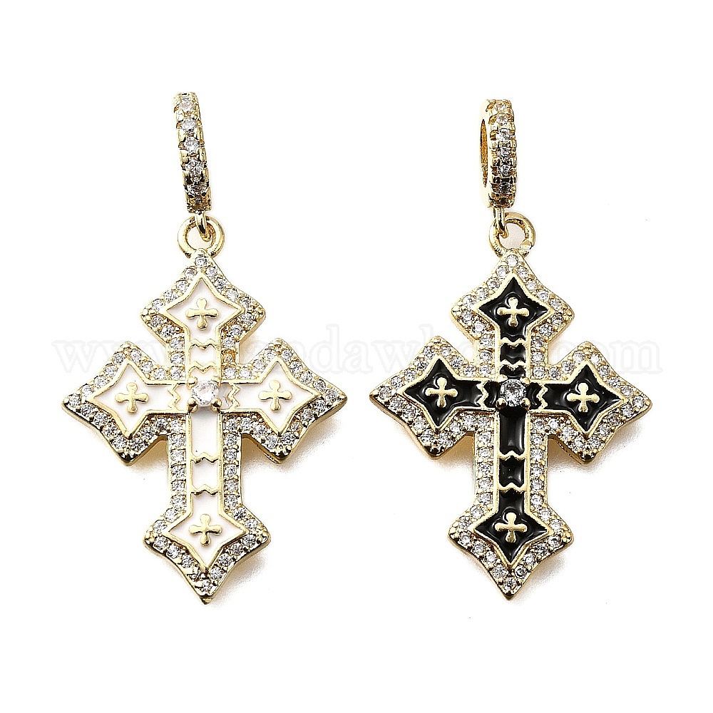 Латунные эмалированные европейские подвески с подвесками, подвески с большим отверстием в форме креста из прозрачного кубического циркония, реальный 18 k позолоченный, стойки покрытие, долговечный, без свинца и без кадмия