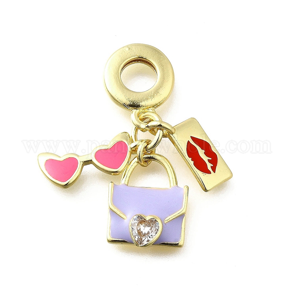 Европейские подвески с паве из латуни, прозрачными кубическими цирконами и цветной эмалью, сердечко очки сумочка большие дырки подвески, долговечный, без свинца и без кадмия, стойки покрытие