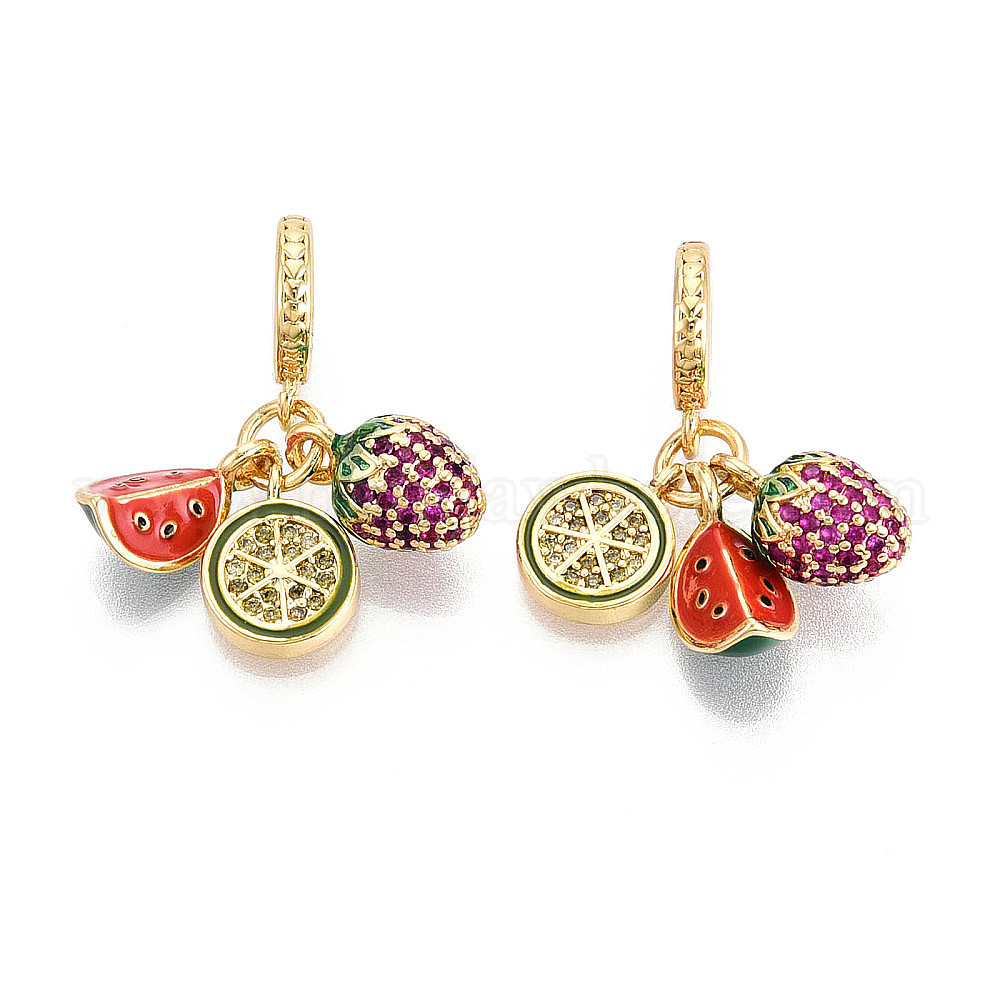 Латунное микропейв с кубическим цирконием европейские подвески с подвесками, с эмалью, клубника, арбуз и лимон, Подвески с большими отверстиями