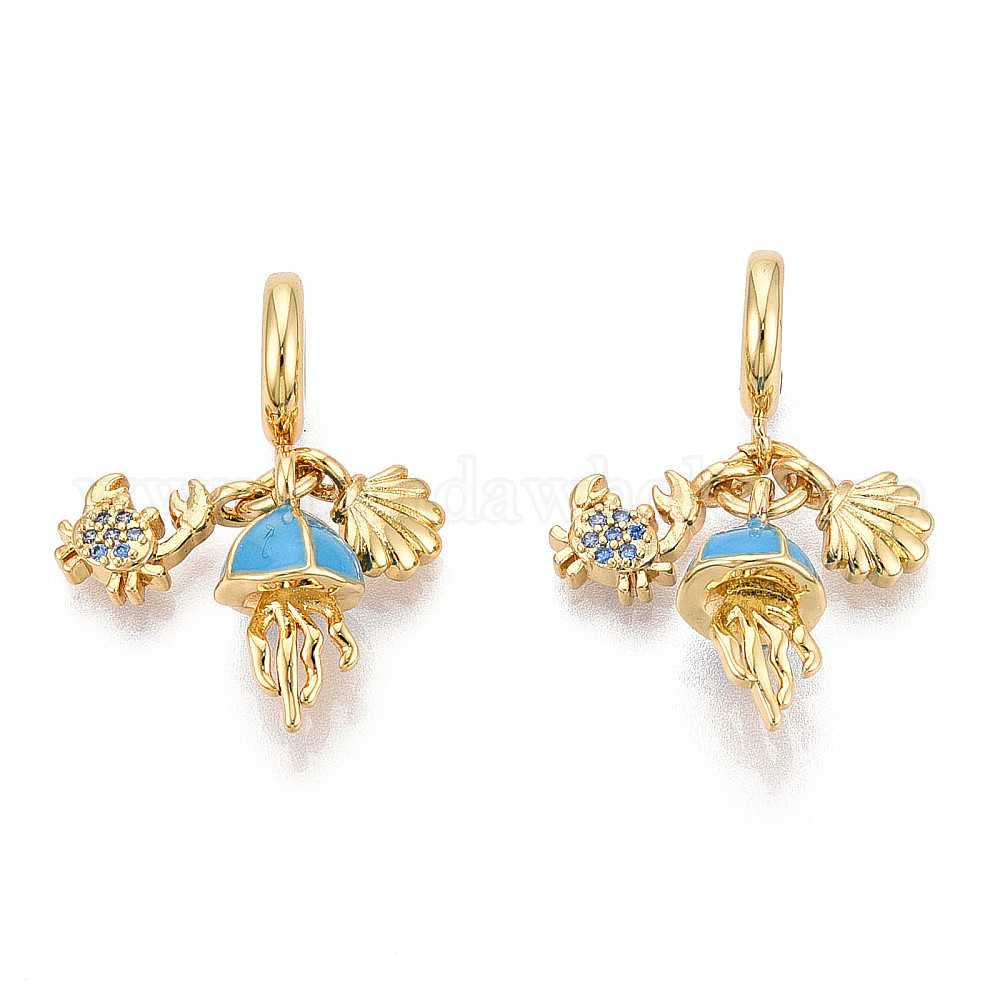 Латунь микропаве прозрачный кубический цирконий европейские подвески с подвесками, с эмалью, медуза, ракушка и краб, Подвески с большими отверстиями