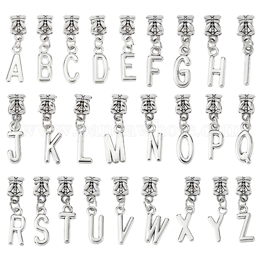 • Античное Серебро 52 шт., европейские подвески из сплава в тибетском стиле, Подвески с большими отверстиями, Письмо ~ Z, античное серебро, 28~29 мм, отверстие : 5.5 мм, 26 шт / пакет