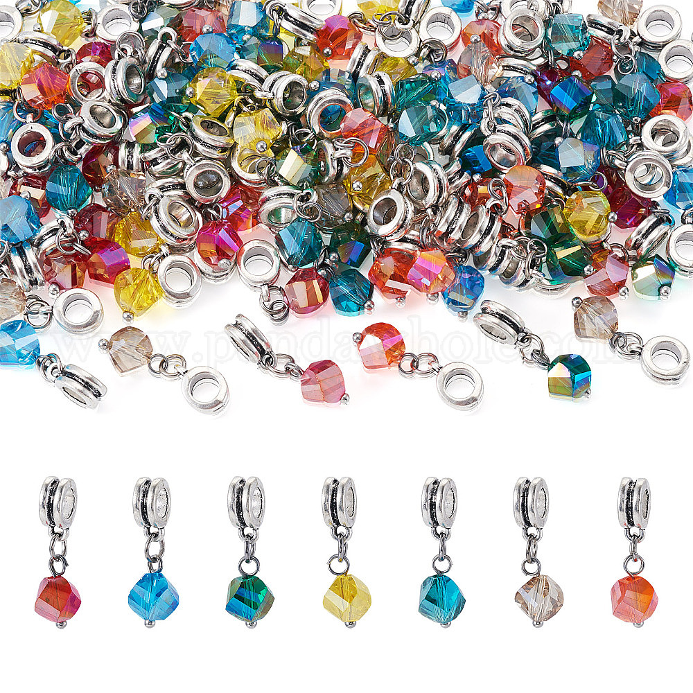 105шт. 7 цвета стекла европейские подвески с подвесками, подвески с большим отверстием, со сплавочной фурнитурой, платина (0366MF)