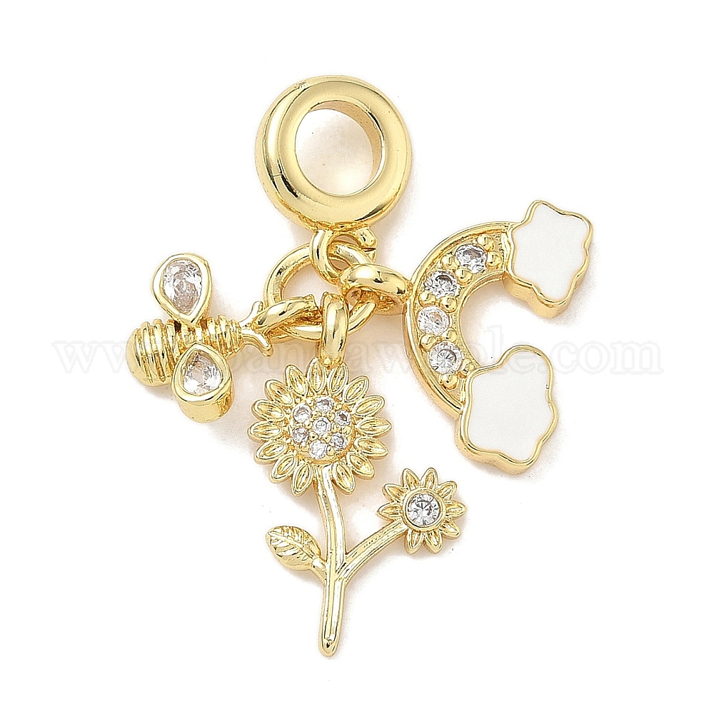 Латунь микропаве прозрачный кубический цирконий европейские подвески с подвесками, эмалевые подвески с большими отверстиями, пчелы и цветы и радуга, долговечный, стойки покрытие, без кадмия и без свинца (03683Y)