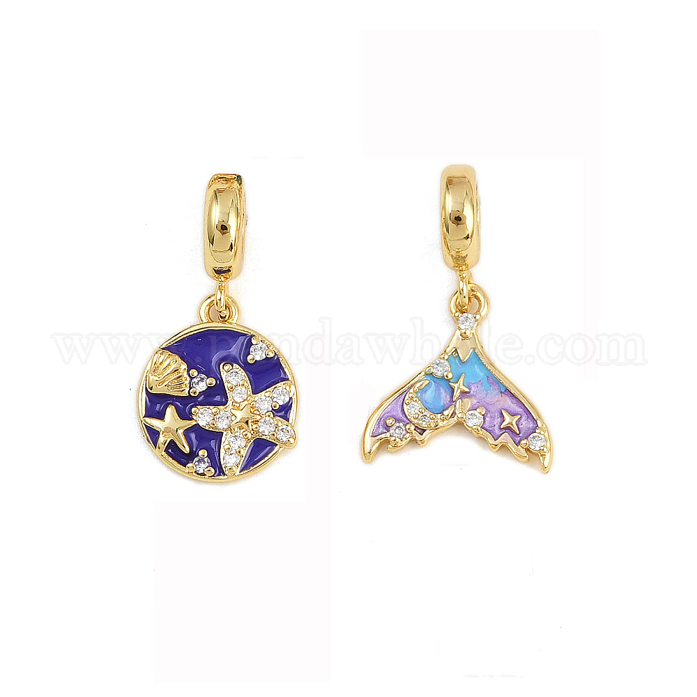 Латунь микропаве прозрачный кубический цирконий европейские подвески с подвесками, эмалевые подвески с большими отверстиями, реальный 18 k позолоченный