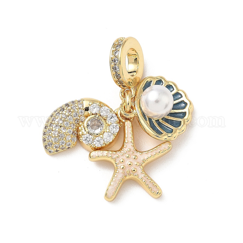 Латунь микропаве прозрачный кубический цирконий европейские подвески с подвесками, Подвески в форме ракушки из синей эмали, стальные, с большим отверстием, с имитацией жемчуга из АБС-пластика, без кадмия и без свинца, стойки покрытие