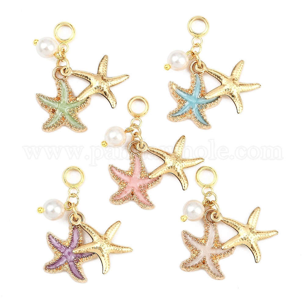 5 шт. 5 цвета двойные эмалевые европейские подвески-подвески в виде морских звезд, подвески с большими отверстиями с 304 подвесками из нержавеющей стали и бусинами из ракушечного жемчуга, золотые