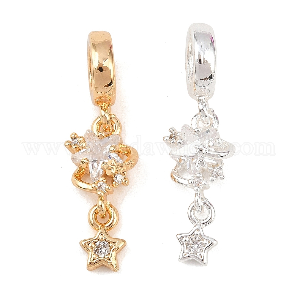 Латунные подвески из прозрачного кубического циркония в европейском стиле, подвески в виде звезд с большими отверстиями
