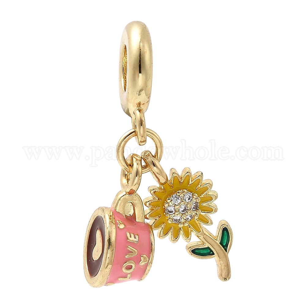 Латунь микропаве прозрачный кубический цирконий европейские подвески с подвесками, Подвески с большими отверстиями в виде кофейных подсолнухов с цветной эмалью, без кадмия и без свинца, стойки покрытие, долговечный