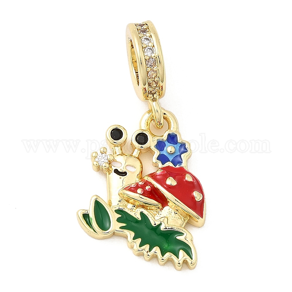 Латунь микропаве прозрачный кубический цирконий европейские подвески с подвесками, подвески в виде грибовидной улитки с большим отверстием и цветной эмалью, без кадмия и без свинца, стойки покрытие, долговечный