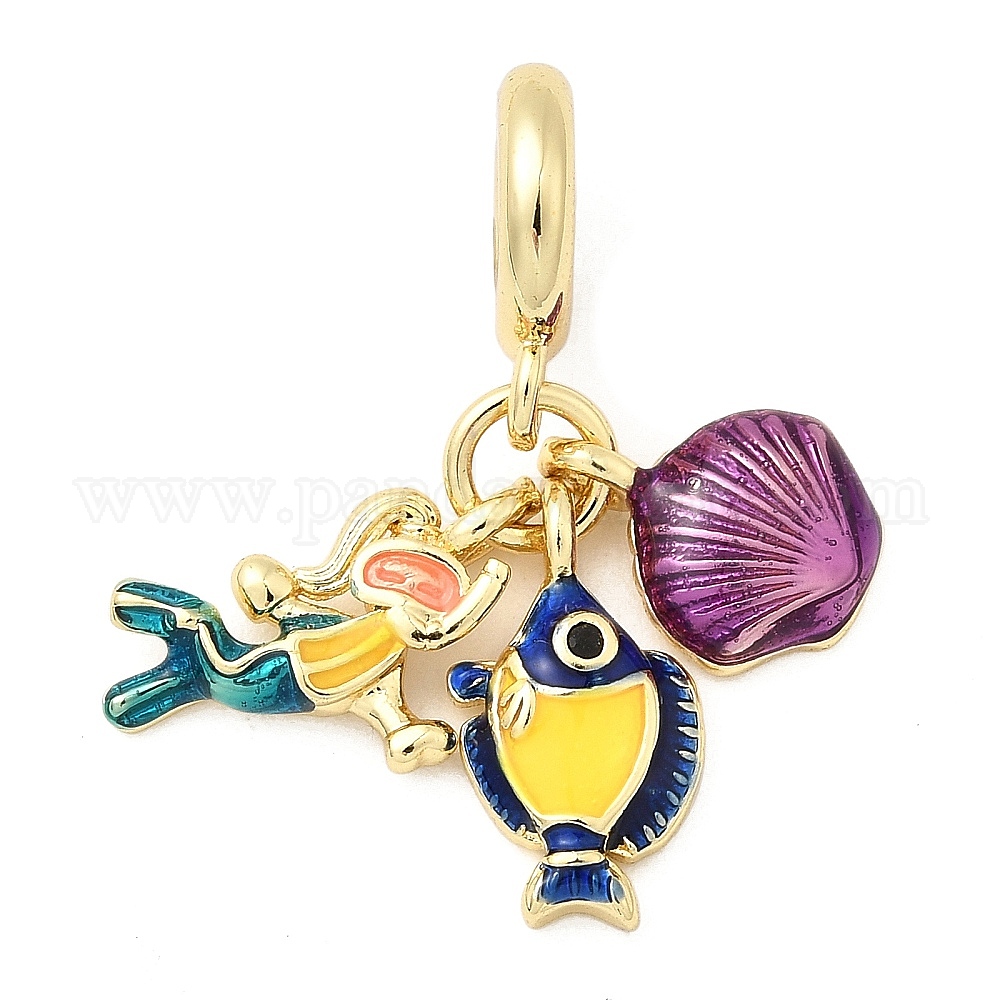Латунные разноцветные эмалевые европейские подвески в форме ракушки рыбы, подвески с крупными отверстиями и черными кубическими цирконами, без кадмия и без свинца, стойки покрытие, долговечный