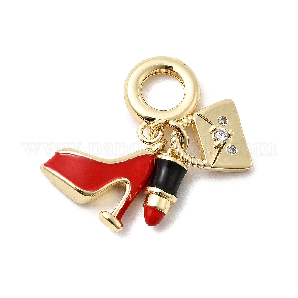 Латунь микропаве прозрачный кубический цирконий европейские подвески с подвесками, подвески в виде помады и сумочки с большими отверстиями, покрытые красной эмалью