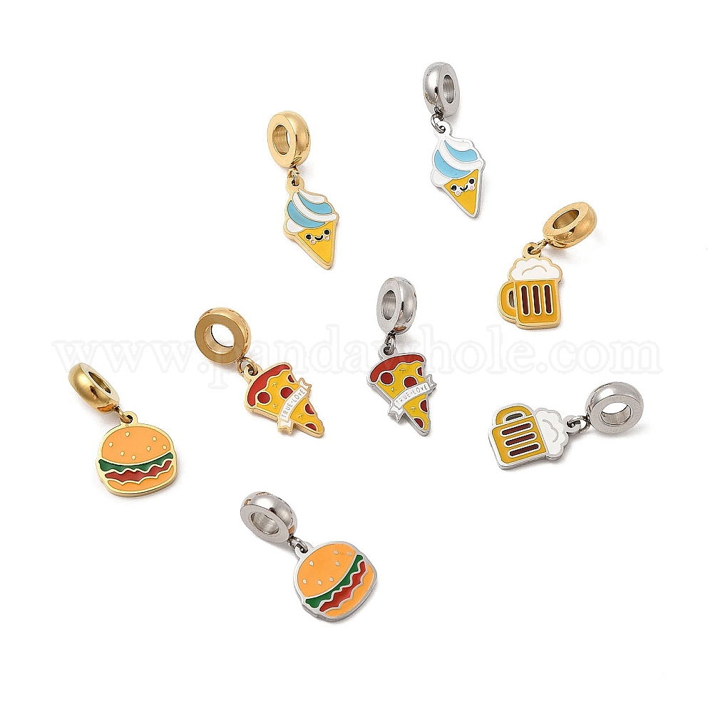 304 европейские подвесные подвески из нержавеющей стали с эмалью, гамбургер мороженое пиво пицца подвески с большими отверстиями, ионное покрытие (ip)