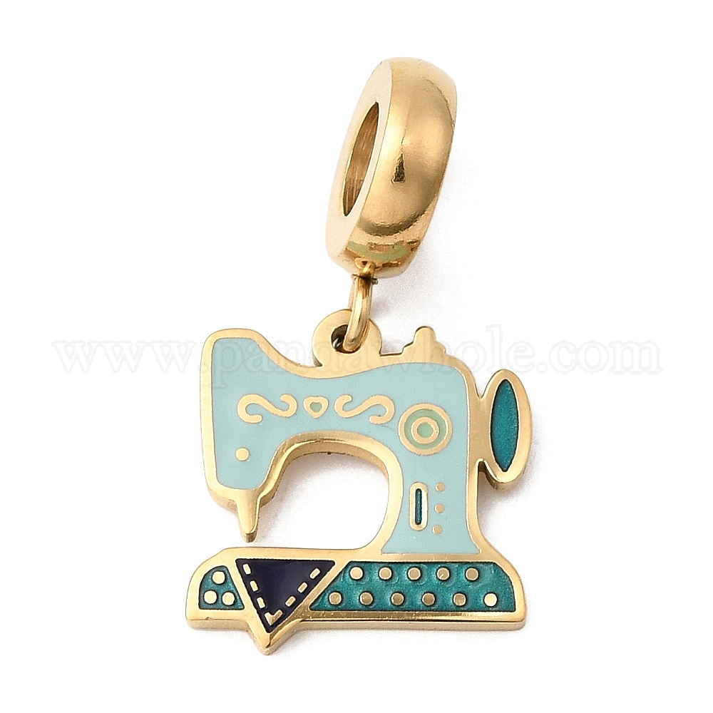 304 европейские подвески из нержавеющей стали с голубой эмалью, подвески с большими отверстиями на швейной машине, ионное покрытие (ip)