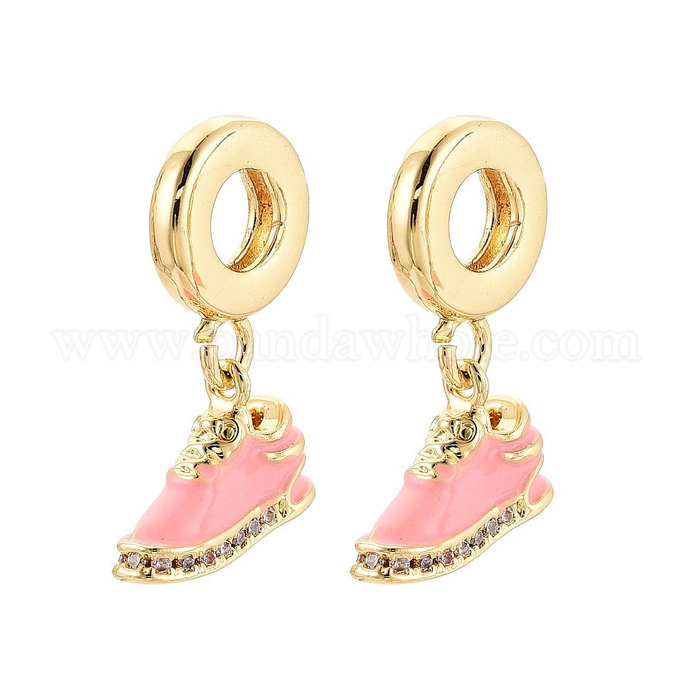 • Pink Европейские подвески-шармы из латуни с микропаве из прозрачных кубических цирконий и эмали, подвески с большими отверстиями для обуви, реальный 18 k позолоченный, розовые, 20~24 мм, отверстие : 4.8 мм