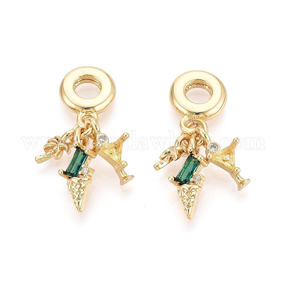 Европейские подвески с паве из прозрачных и зеленых кубических цирконий из латуни, мороженое, бокал и кокосовая пальма, Подвески с большими отверстиями