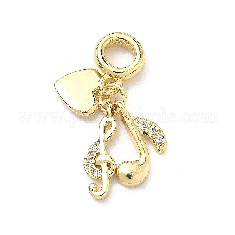 • Настоящее золото 18K Латунь микропаве прозрачный кубический цирконий европейские подвески с подвесками, подвески в форме сердца с музыкальными нотами и большим отверстием, долговечный, без кадмия и без свинца, стойки покрытие, реальный 18 k позолоченный, 28 мм, отверстие : 4.8 мм