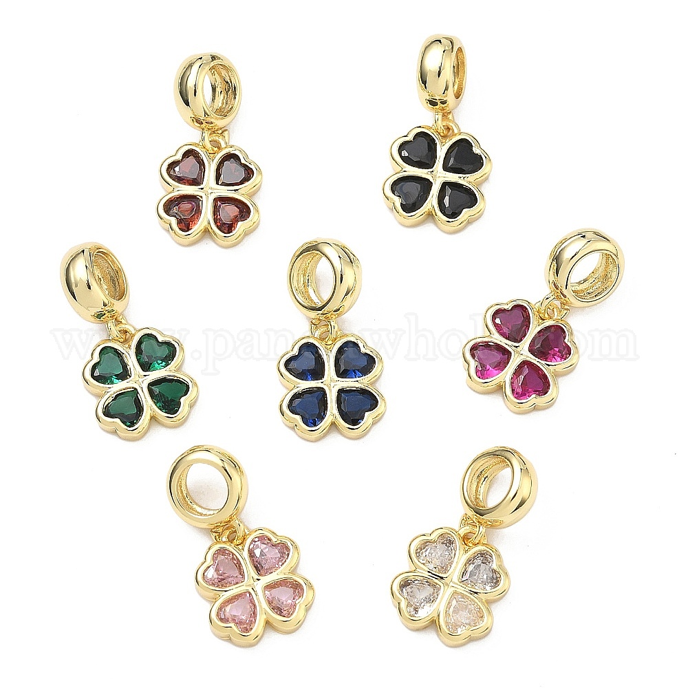 Подвеска в виде клевера в европейском стиле ко Дню Святого Патрика, латунная, инкрустированная кубическим цирконием., подвески с большим отверстием в виде клевера, стойки покрытие, долговечный, без кадмия и без свинца, реальный 18 k позолоченный
