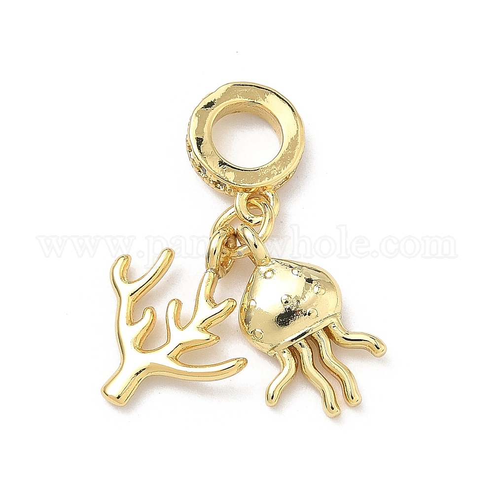 Латунь микропаве прозрачный кубический цирконий европейские подвески с подвесками, Подвески в форме коралла и медузы с большим отверстием, стойки покрытие, долговечный, без свинца и без кадмия