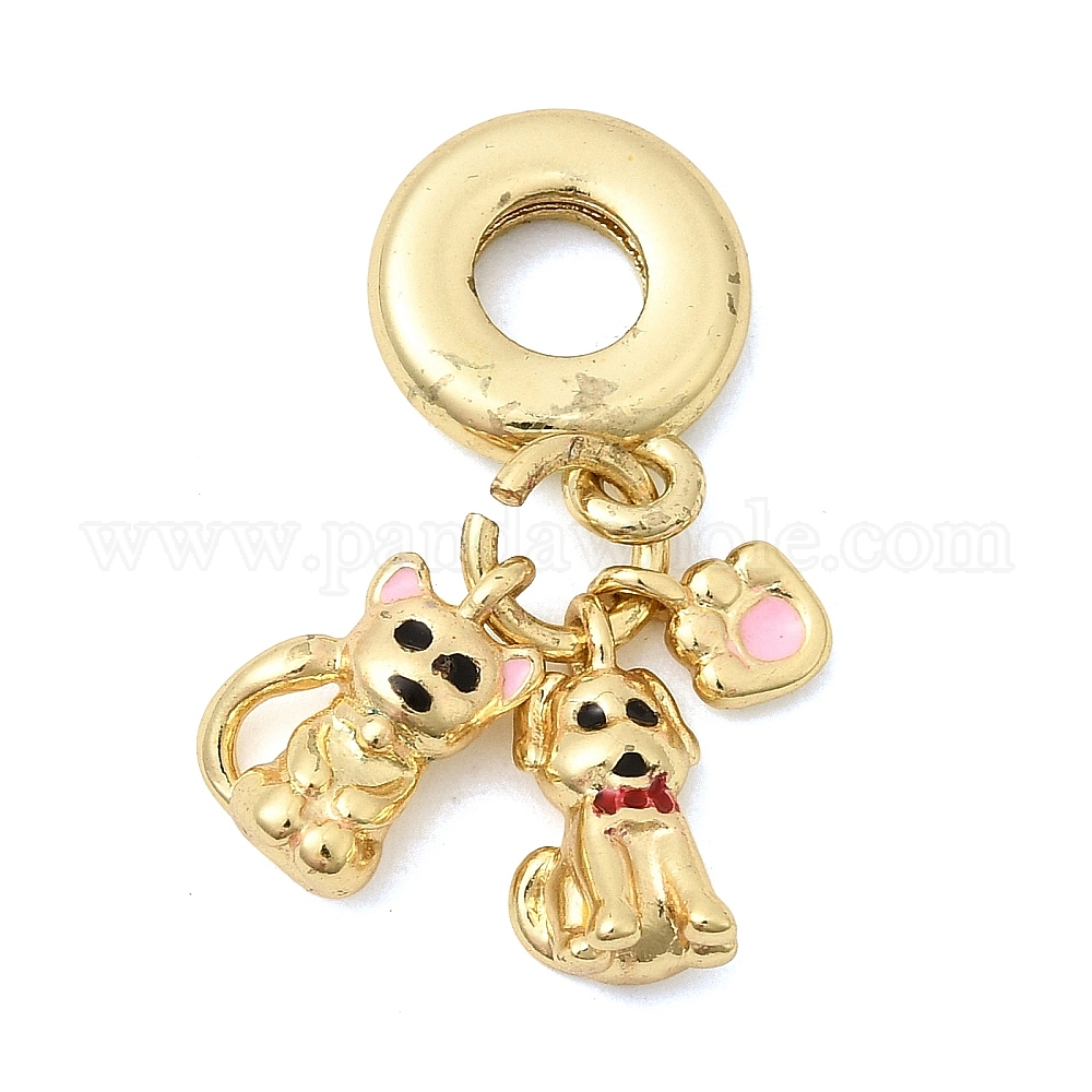 Латунные подвески в виде европейских шармов с черной и розовой эмалью, кулоны с отпечатками собачьих лап, без кадмия и без свинца, долговечный, стойки покрытие