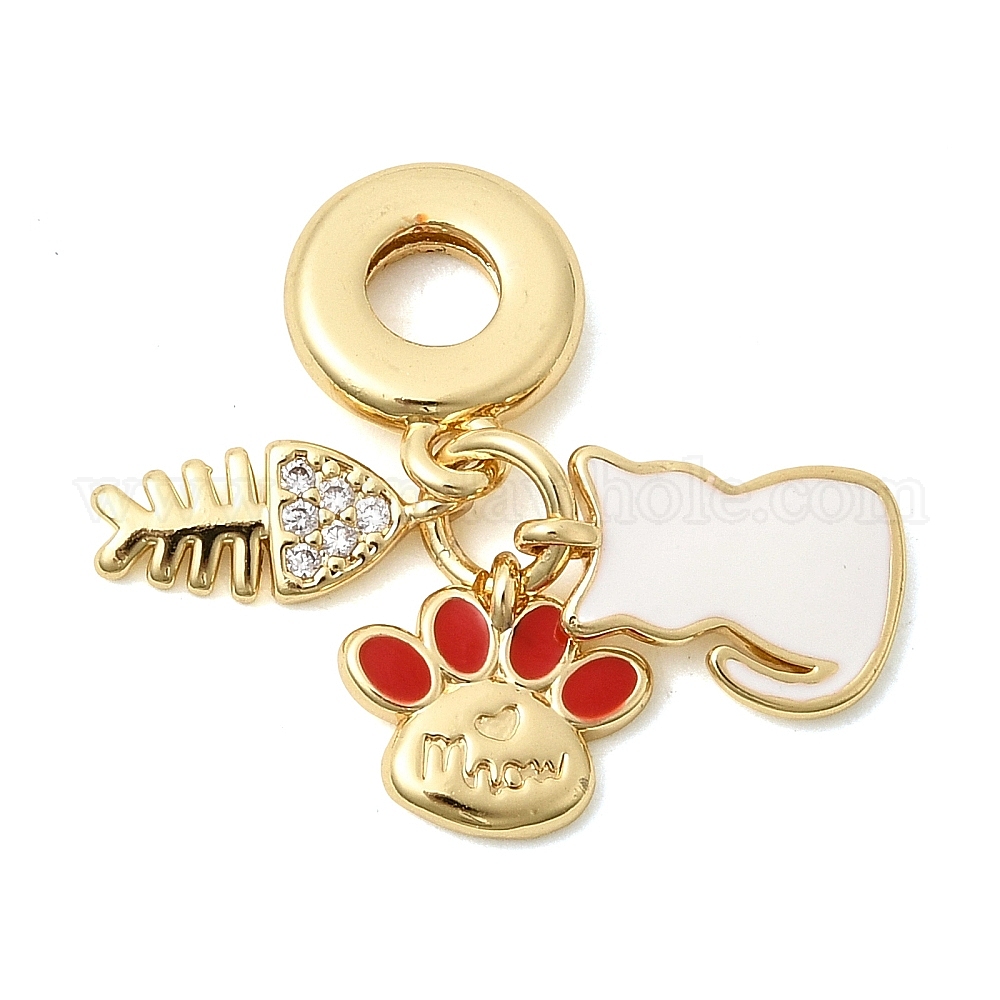Латунь микропаве прозрачный кубический цирконий европейские подвески с подвесками, Кулоны с большим отверстием в виде кости белого сома, украшенные эмалью., без кадмия и без свинца, долговечный, стойки покрытие