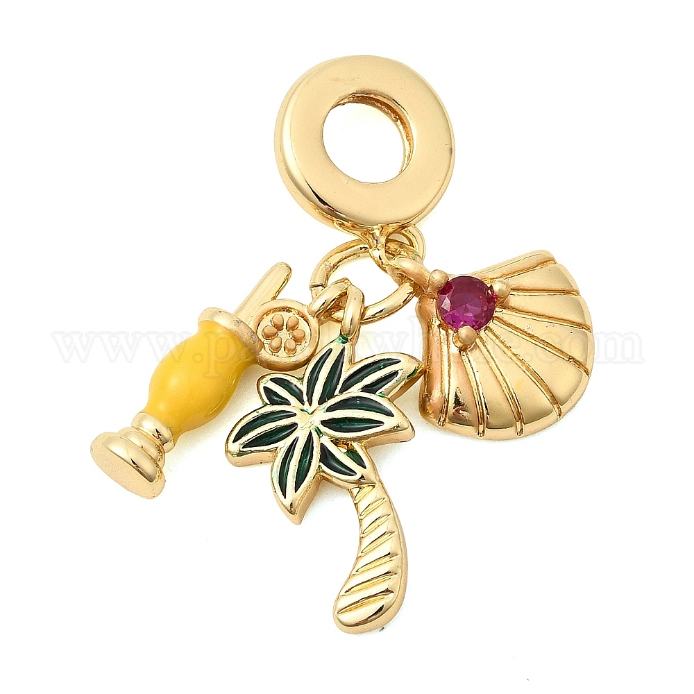 • Настоящее золото 18K Латунные эмалированные европейские подвески с подвесками, Желтые коктейльные подвески в виде кокосовой пальмы с большим отверстием и кубическим цирконием, без кадмия и без свинца, долговечный, стойки покрытие, реальный 18 k позолоченный, 31 мм, отверстие : 5 мм