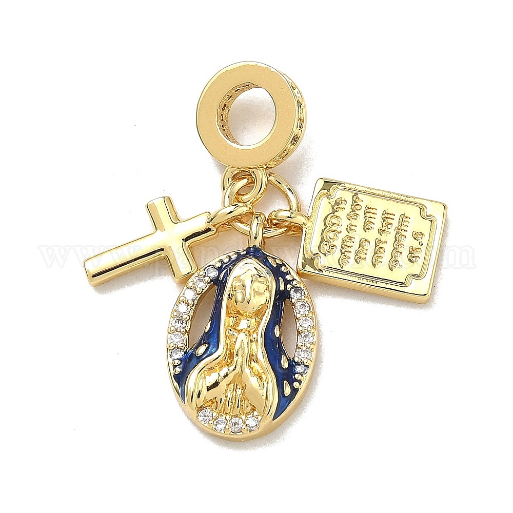 Латунь микропаве прозрачный кубический цирконий европейские подвески с подвесками, Подвески с изображением креста Девы Марии и Библии с большим отверстием, покрытые синей эмалью., стойки покрытие, долговечный, без кадмия и без свинца