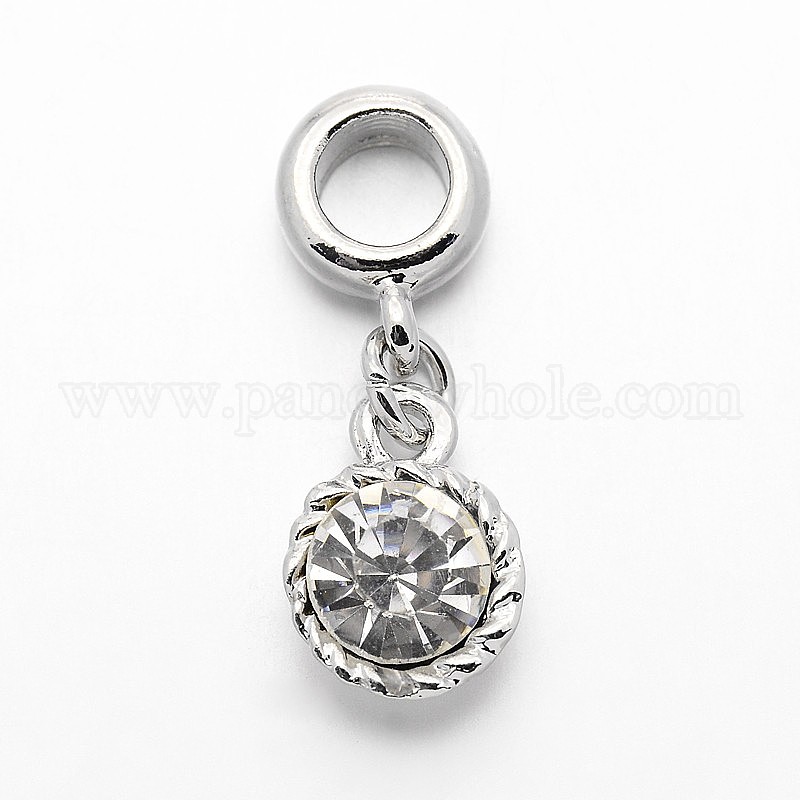 Сплав покрытый платиной эмаль горный хрусталь большое отверстие европейский болтаться плоские круглые подвески, 26 мм, отверстие : 5 мм