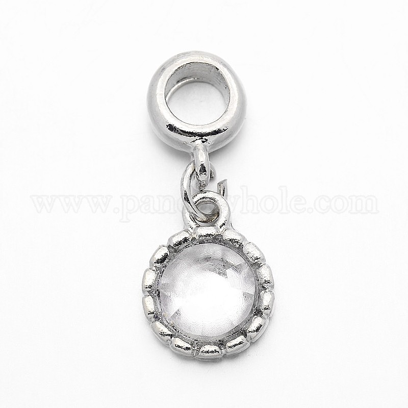 Платиновое покрытие сплава акриловые горный хрусталь большое отверстие европейский болтаться плоские круглые подвески, 27 мм, отверстие : 5 мм