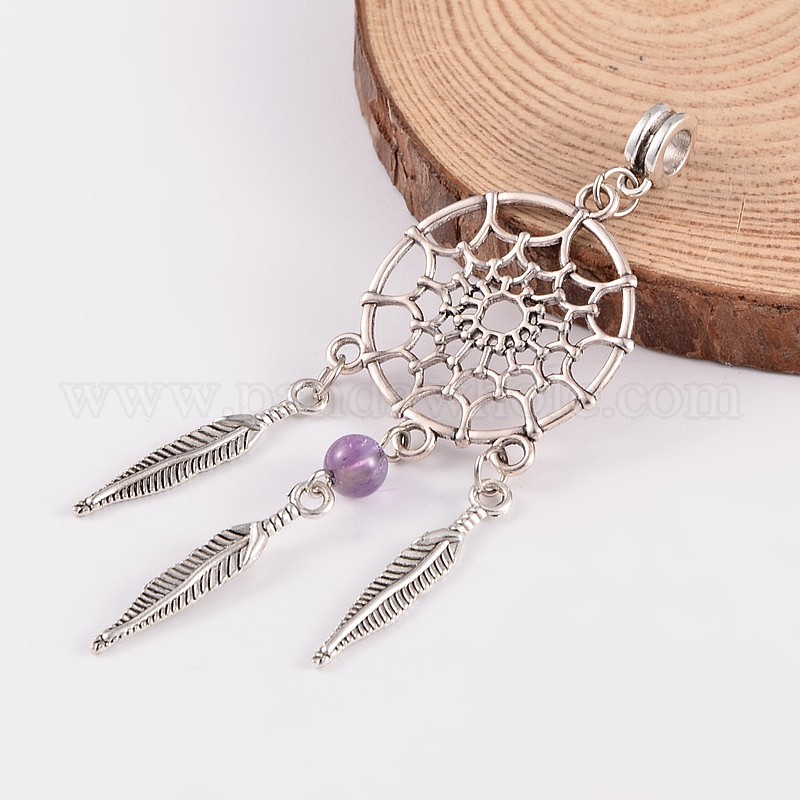 Античный серебряный сплав драгоценный камень европейские висячие подвески, 84 мм, отверстие : 4.5 мм