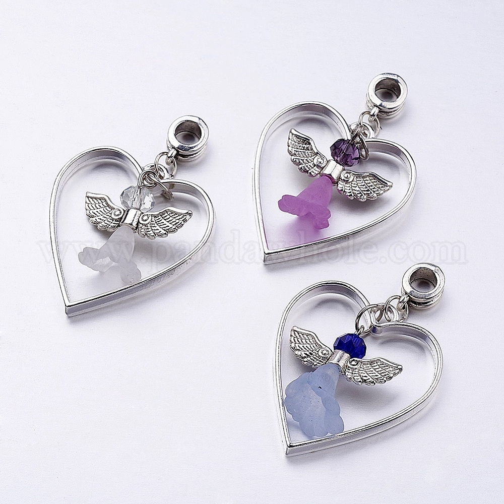 Сплав европейские подвески с подвесками, Бусины "сердце" с большим отверстием, с акриловыми и стеклянными шариками, прекрасное свадебное платье ангел болтаться