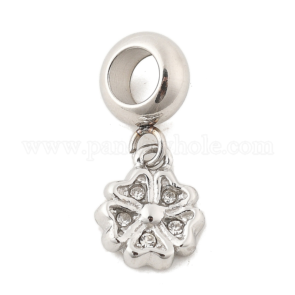 304 подвесные европейские подвески из нержавеющей стали, Подвески с большими отверстиями, со стразами, цветок