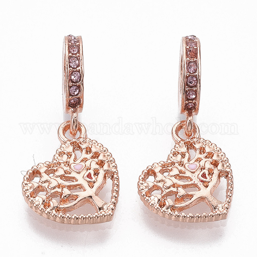 Сплав европейские подвески с подвесками, с стразами и эмалью, Подвески с большими отверстиями, Сердце с деревом