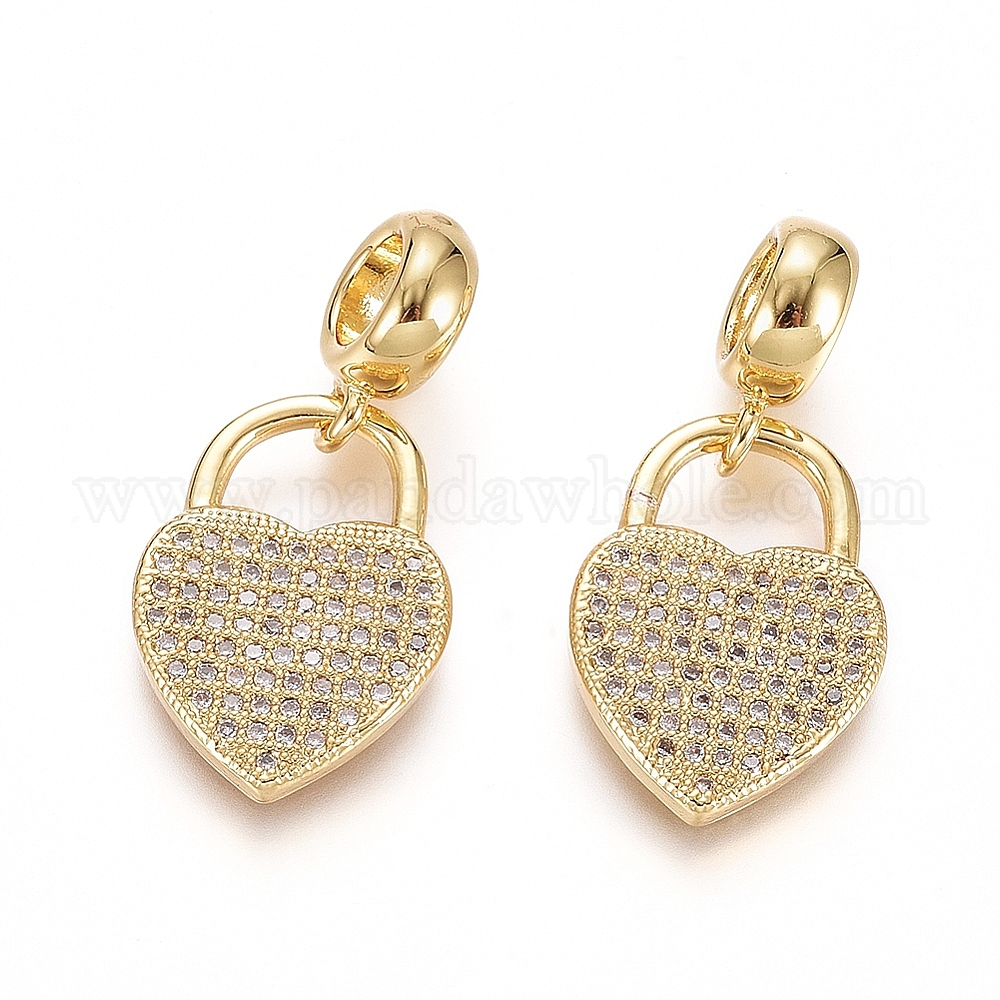 Латунь микропаве прозрачный кубический цирконий европейские подвески с подвесками, Подвески с большими отверстиями, сердце замок