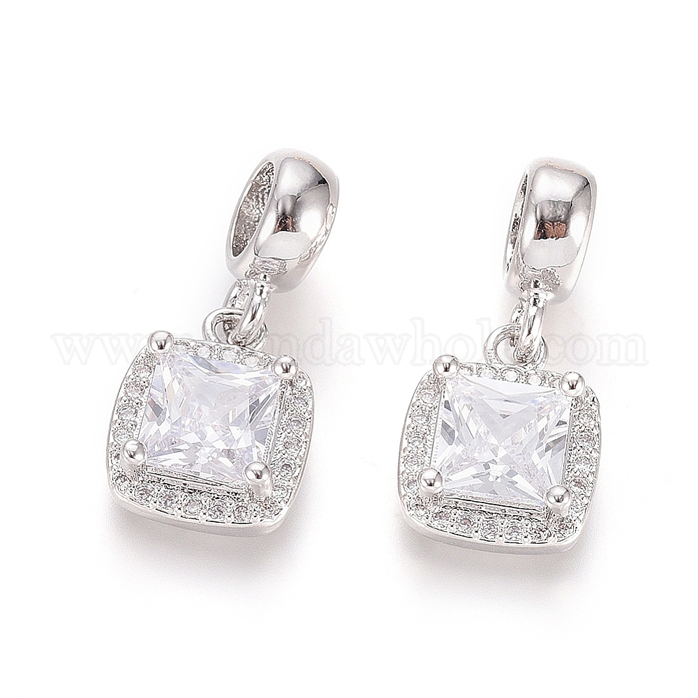 Латунь микропаве прозрачный кубический цирконий европейские подвески с подвесками, Подвески с большими отверстиями, квадратный
