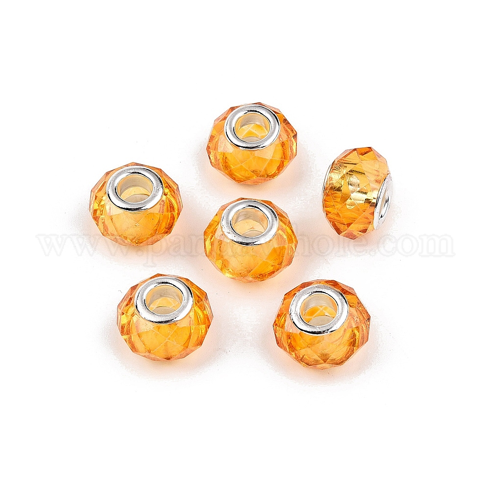 • Темно-Оранжевый Краска для выпечки прозрачные стеклянные европейские бусины, бусины с большим отверстием, с медными сердечниками, граненые, рондель, темно-оранжевый, 13.5~14x9~9.5 мм, отверстие : 5 мм